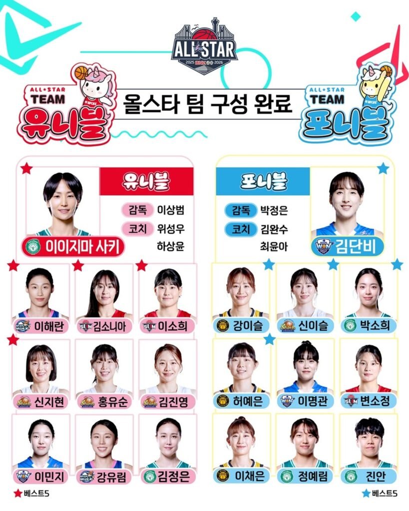 The WKBL All-Star Game is 100% selected by fan voting, bringing together representative players from all six WKBL clubs. Key players include the following 👇