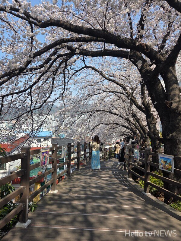 釜山鎮区開琴洞に位置する開琴桜文化路が、春を迎えて再び注目を集めています。山腹道路に沿って続くこの場所は、古い住宅や60階段、そして桜が調和したユニークな風景で知られています。